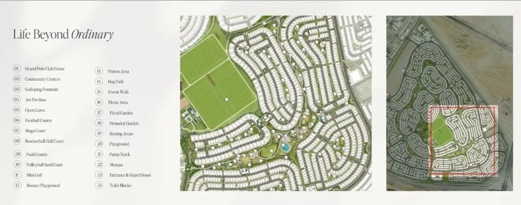 Property Types: Expertly crafted 3, 4, and 5-bedroom villas, including the exclusive Equestrian Luxury and Ultra Luxury mansions.